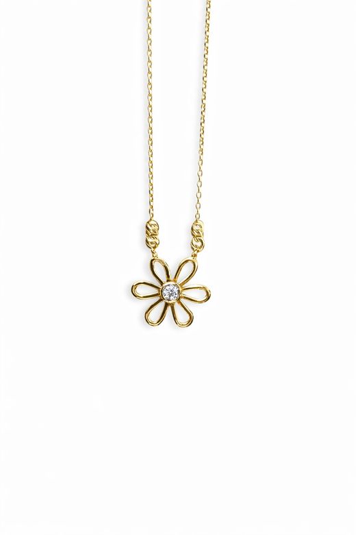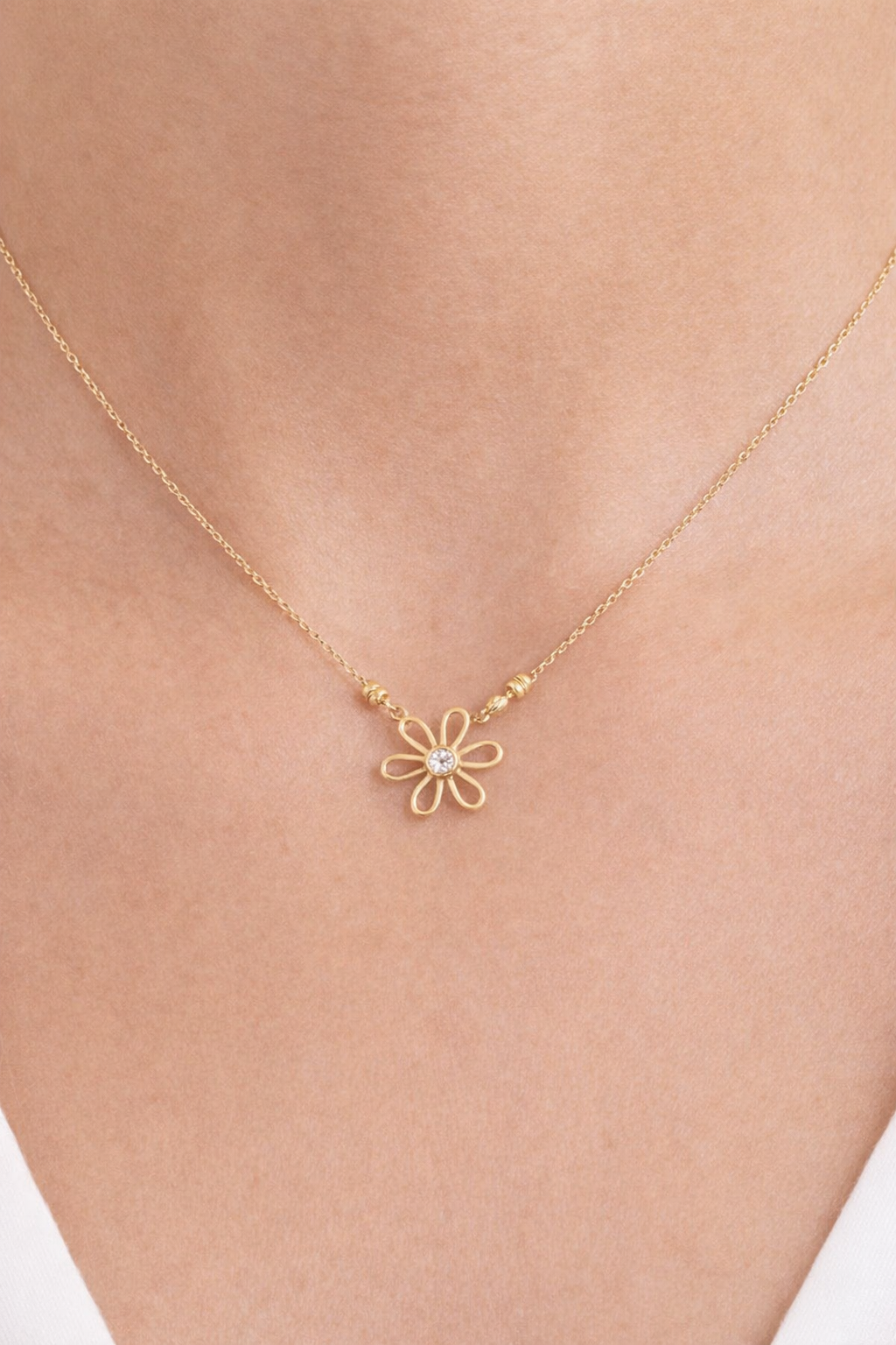 Gargantilla en oro amarillo de 18 quilates, con colgante en forma de flor con un diamante central de 0,03qts. Largo total de la cadena 42 cms.