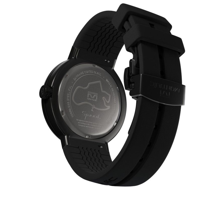 Caja de diseño único tipo pistón, de Ø 43 mm. Acero inoxidable con negro PVD. Tapa de fondo a rosca y corona moleteada con logotipo grabado. Cristal de zafiro, con tratamiento AR antirreflejos en cara interior. Exclusiva esfera con patrón Gulf. Números aplicados en la esfera. Agujas horaria y minutera con luminiscencia Superluminova™. Movimiento VH31A con tecnología Mecaquartz y 2 joyas, fabricado en Japón por TMI (Seiko Group®) . Correa especial de silicona cómoda y altamente resistente (disponible en 5 colores). Diseño específico patentado de patrón neumático en el interior para facilitar la transpiración. Sistema de intercambio rápido de correas, sin necesidad de herramientas. Cierre desplegable en acero inoxidable tipo mariposa, con pulsadores laterales de apertura, acabado negro PVD a juego con la caja. Dial metálico ultra ligero y multicapa. Bisel interior metálico. Resistencia al agua 5ATM / 50 metros. CONTENIDO DE LA CAJA Reloj Montjuïch. Bidón metálico (válido como estuche de viaje). Gamuza para el cuidado del reloj. Tarjeta de garantía y acceso al manual de usuario mediante código QR.